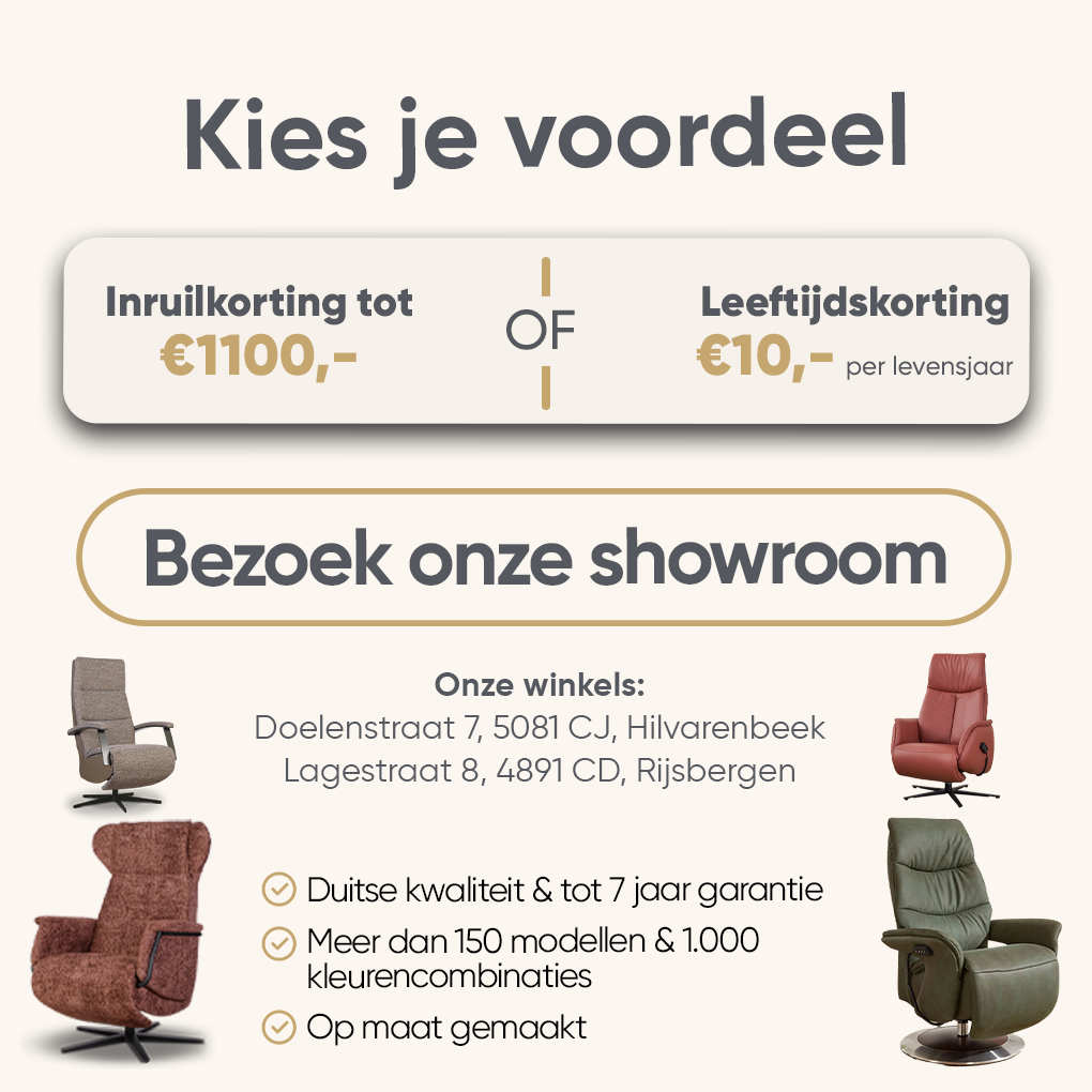 Onze relaxstoelen zijn ontworpen om rugklachten te verlichten en de druk op uw wervelkolom te verminderen. Dankzij de innovatieve technologieën en premium materialen geniet u van een rustgevende zitervaring die zich aanpast aan uw lichaamshouding. Voor wie moeite heeft met opstaan, bieden onze sta-op-stoelen een praktische oplossing: met één druk op de knop helpt de stoel u eenvoudig overeind.